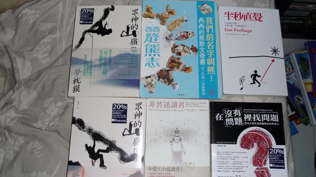 我正在反省中,太多旧书还没看完,又买新书.只是最近两个月因为调动到KLCC 附近工作,一直跑到K书店逛,抵挡不住诱惑才买了稍微多一点(心虚) |