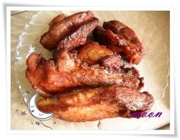 1。将去皮肉放入搅拌均匀的腌料内腌半小时(我腌隔夜)