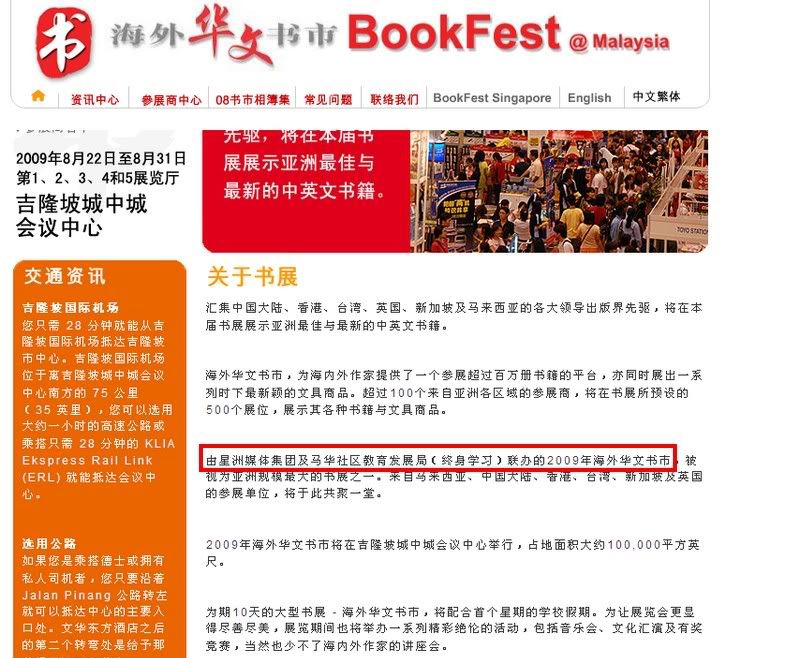 书市的官方网站和导览手册都写了星洲是主办单位,不管怎样,个人认为他们仍然必须负上责任。也许督促或给意见大众就是他们必须做的。官方网站可见以下照片的字眼,所以星洲不能置身事外。而且马华也是主办单位之一呢!是不是也要投诉给他们?不过他们最近自顾不暇~~