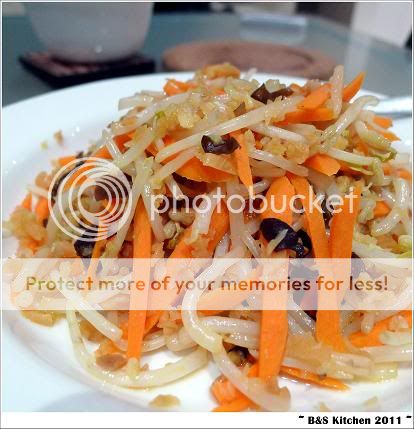 清炒豆牙我也不喜欢。。。所以今天我想到加菜脯进去, 然后加买还有黑木耳~~~~就变成了我的菜脯炒三丝!