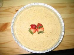 4)將芝士餡倒入壓有餅底之模中抹平,放入雪櫃內約4小時至凝固,稍作裝飾即成。