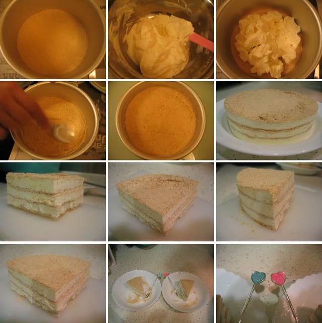 1)餅底材料完全混合罝於模底壓平。放入雪櫃雪15分鐘。