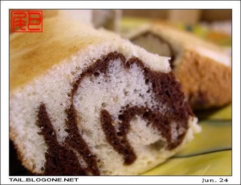 7、模具内抹油,先倒1/3白面糊,再加一半的黑面糊,再倒1/3白面糊,另一半黑面糊,最后的白面糊铺上,160度烤50~60分钟。