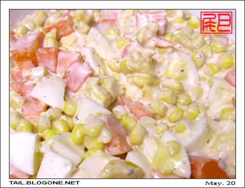 材料:玉米罐头一罐,胡萝卜1根,鸡蛋2只,原味酸奶,番茄沙司,蛋黄酱,蜂蜜