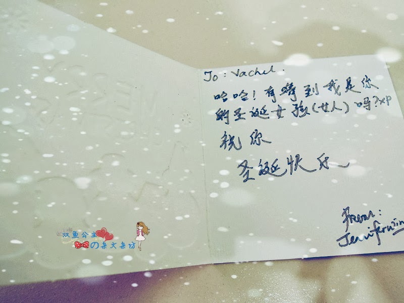 感恩珍妮花在百忙中抽空为我挑选这一份圣诞礼物,我真的好爱好爱 你说你在收到邀请的隔一天就去买礼物,更叫我为之动容 连月来为了 手作市集而忙碌,还能记得我的喜好,实属难得 小妞我何德何能吖,能够结交到像你这么有爱的朋友,实在心存感激 ♥