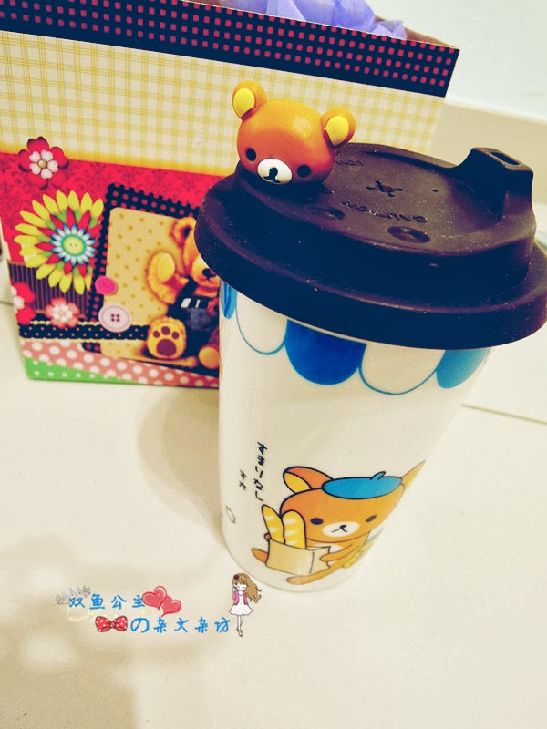 这礼物来得正是时候,早在几个星期前,不小心打破了烂人送我的爱心杯子,害我难过很久  用惯了专用杯子,突然没有的失落感,还真的要花时间来适应 这份爱心,成了我内心的小慰藉(笑) 懒懒熊真的很可爱,看着它,很轻易地就让我笑了出来