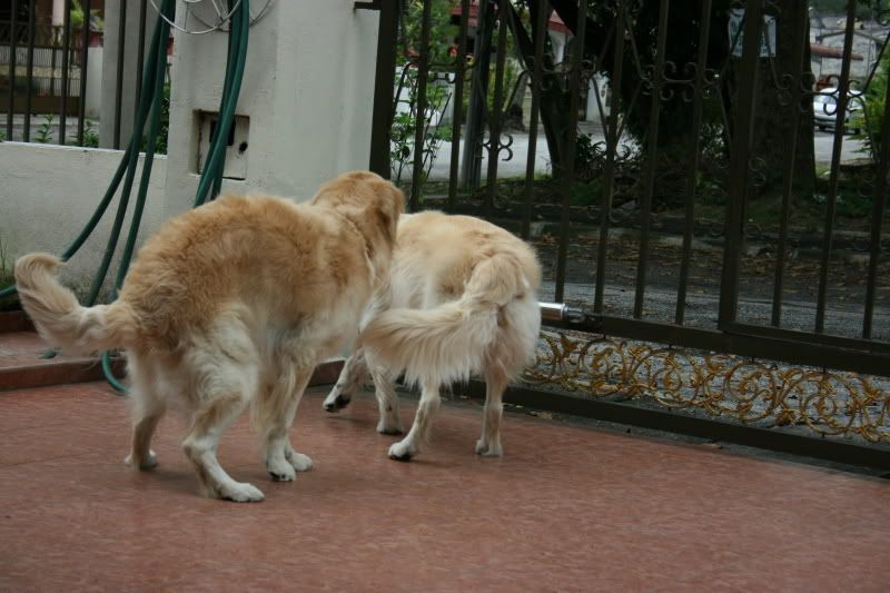 剛才把我嚇到手腳都軟了... 臭阿8偷跑出去了, 跟著外面的母狗, 追著她跑過馬路, 有跑回來... 這樣跑來跑去, 追來追去... 看到車來了, 喊他都不理... 後來不懂怎麼樣的自己跑回家...