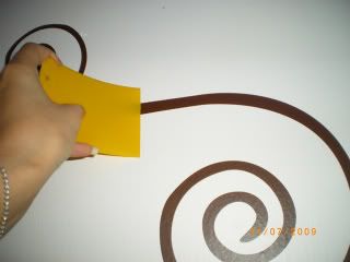 确定位置以后,用卡片,对着有图案的墙贴来回“狠狠”的刮平(如有小泡泡也推出来)。