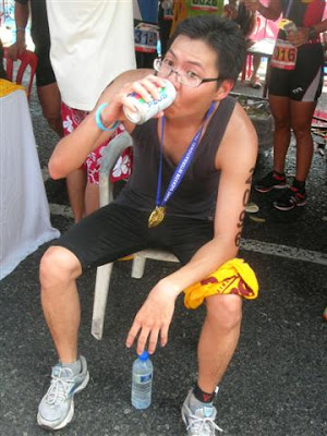 眼前的选手有些已经开始起身跑了,我尝试一踏,脚到地了,可以开始跑上岸,我大口大口的喘气。阿伟在左岸边大声喊,【快点跑】,我听到了;阿飞在右边喊,【加油】,我也听到了。我的力量回来了,大家都那么支持我,我不能如此轻易放弃!