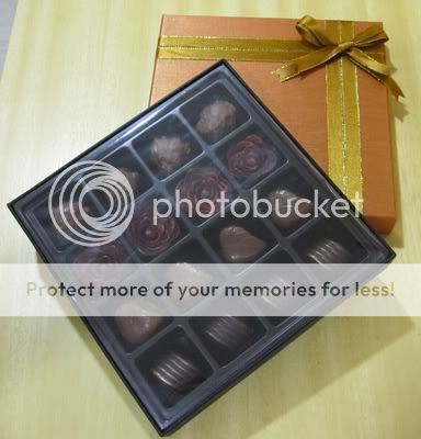 原来老公在中午见了客户后,看到那里刚巧有巧克力展,就跑去八。当那销售员问他有预算吗,他说买东西给老婆是没有预算的(听了有甜到哦嘻嘻)。于是那销售员就介绍他所买的那一款,是premium chocolate imported from Belgium,里面共有16粒,要价RM160。哗,那不是代表说一粒要价RM10??!!!听到价钱后,我就开始怨老公说干嘛花那么多钱去买巧克力,吃了就没了,我宁愿他买其它不是吃的东西,至少用了还能看得到或继续用。这不是我第一次这样说他了,他每次哄我就只会买吃的,一点都不浪漫,而且还会害我发胖。不过听到他说他买这给我的用意后,我就不再说什么了,反而是觉得很甜(不用吃也都觉得甜了哈哈)。这其实是一个爱的鼓励,因为我就快要感受人生中最痛的时刻,他想先给我点甜头。