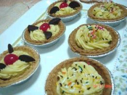3.把地瓜泥放入擠花袋,擠於塔殼內,再放上裝飾,即完成.