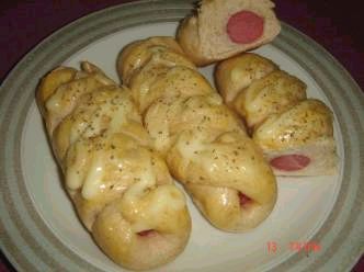 *編織的花樣是重疊出來的,所以香腸放好後,要把麵糰拉長些,使左右的麵皮能順利交叉疊好. |