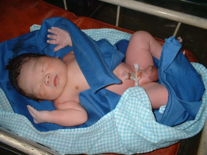 寶寶很可愛﹐睡覺都在笑﹐kawaii噢﹗可是為什么要夾著臍帶的﹖ |