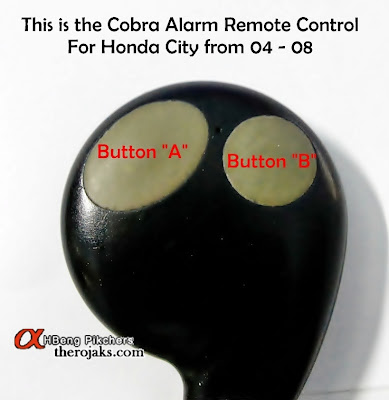 There is 2 buttons on the Cobra Alarm remote, the big one is known as "BUTTON A" and the small one is known as "BUTTON B" and this is what you need to do in the event of battery changed on the Cobra Alarm Remote :