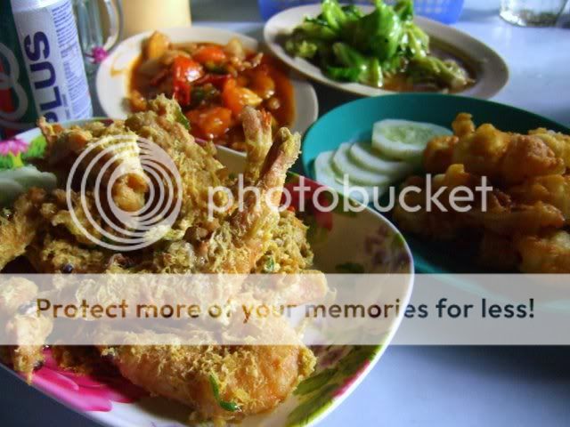 晚餐就随便在一排熟食中心档口吃,四道菜色(麦片虾,酸辣鱼片,耗油菜,炸稣东) 加汽水不过 RM35。