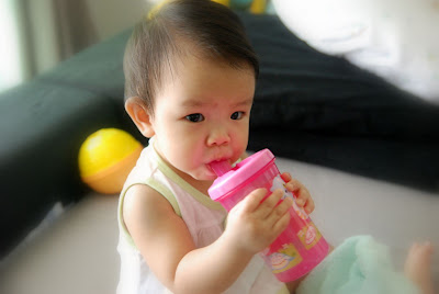 因为她一岁了,我追奶追到累了,体重有不理想,所以想给她奶粉试看看
