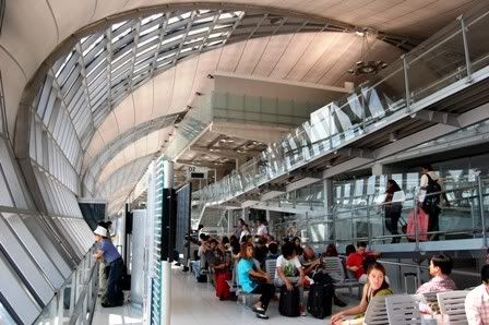 走了40分鐘左右,我也到了曼谷機場啦,,曼谷國際機場和吉隆坡完全不一樣,這裡遊客多出來好幾倍以上。 |