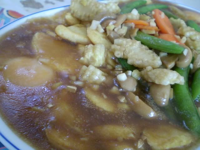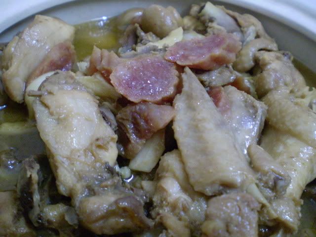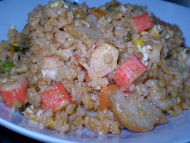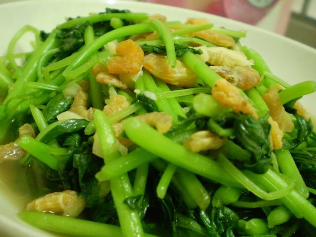 2。爆香蒜茸,加入虾,鸡肉丝,洋葱丝炒一下。