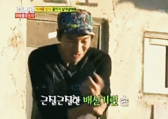在12月16日播出的SBS《星期天真好- Running Man》中,成员挑战在腿上缠被子跳过3个枕头。这个游戏赢了的话可以吃黄豆芽汤饭。