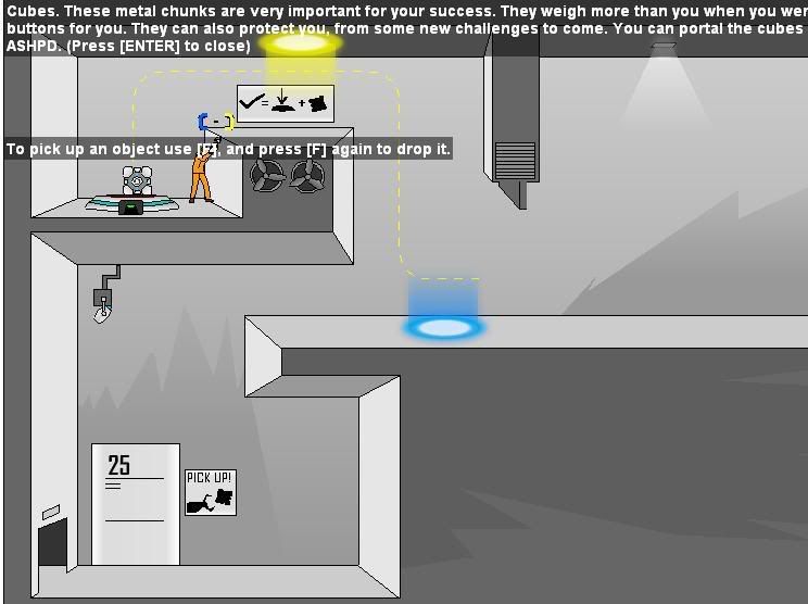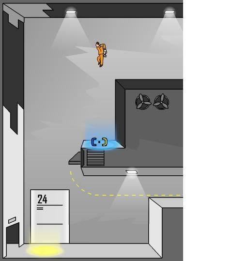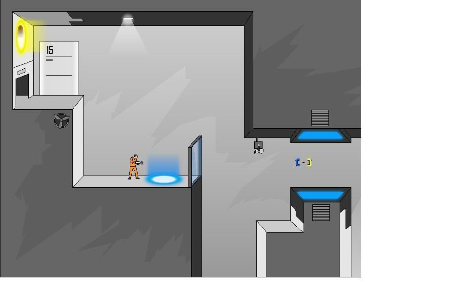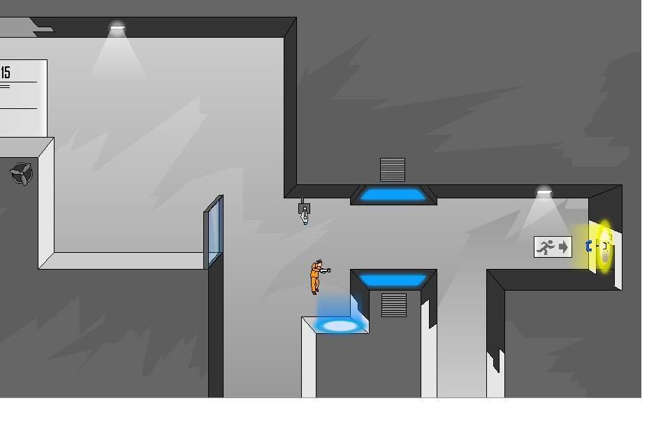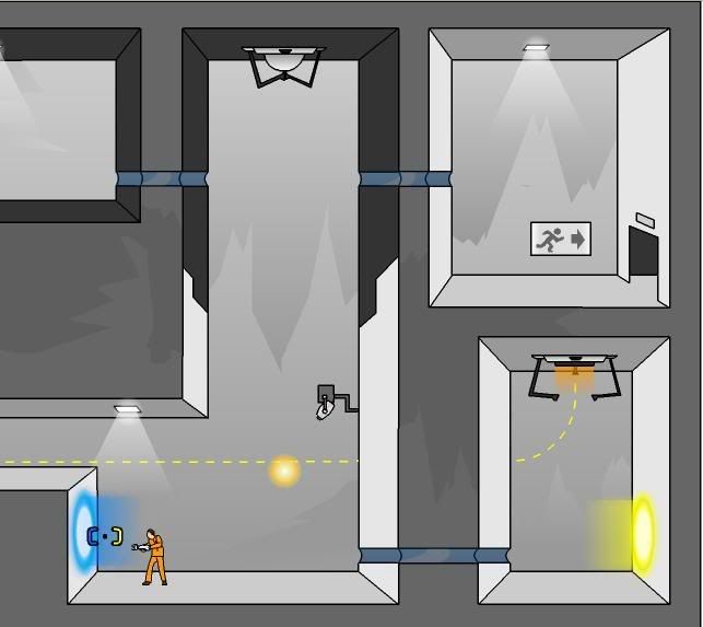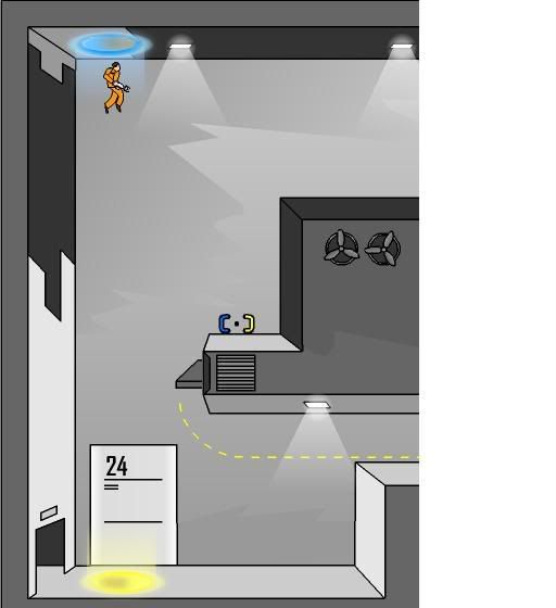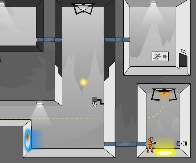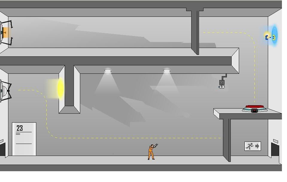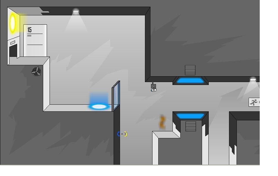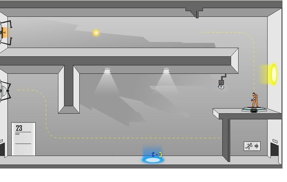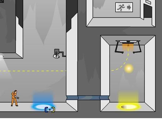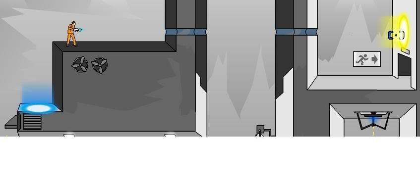 1.如图开两个portal.和上面的方法一样,从蓝色portal下去,黄色portal出来紧接再跳下去蓝色portal以加强速度,第二次从黄色portal出来就会很够力了.