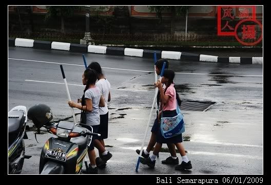 正要过马路,发觉路上好多小孩拿着打狗棒走着,难道这里是巴厘丐帮大本营?后来离开Semarapura,问了很多当地人却没有人知道这些小孩到底拿打狗棒做什么用,成了我们在巴厘岛的第一个不可思议之谜。。