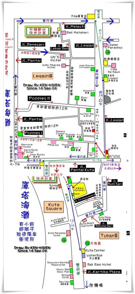 TIPS: 建议下次去的朋友们不需要拿任何地图,机场的地图琳琅满目,只叫人看得目不暇接。司机的车上会有很多很清楚,很详细的地图,还有很可爱的地图。最重要的是打印比较详细的 Kuta 区及 Ubud 区的地图就足够了。其他的交给司机。