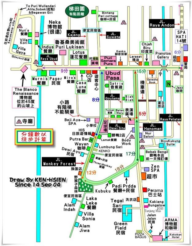 庆幸地球上有种叫做地图的东西,能让人不会迷失方向,也让人能清楚地知道将去,会去,想去,及去过的地方。在巴厘机场匆匆地拿了一些地图,才发现好多都是 toyota,yamaha,honda 的日本地图。笨蛋鬼虽然读过一些日文,认识一些平仮名,即 hiragana,但却无法看的明白那些地图上密密麻麻像蚂蚁般的字体。恨的是书到用时方恨少;事非经过不知难。