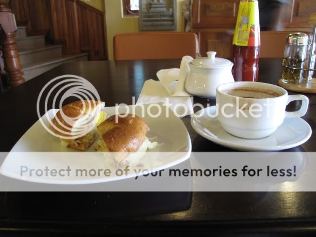 点了Bagel with ham, egg, cheese + Hot chocolate当早餐