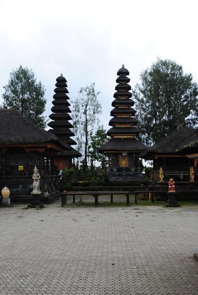 ULUNDANU BATUR TEMPLE. 进这间神庙,是要包SARUNG的,一下车就有好多人会围住你要出租SARUNG的,有卖东西的等等。围得你密不透风,定力不够的很快就会荷包出血。下车时KOMANG有交待我们只需捐RP5,000给神庙,就可拿到SARUNG,回时还回去就可以了,但是我们还是被那阵像给吓到,只好给RP10,000租了一条SARUNG.