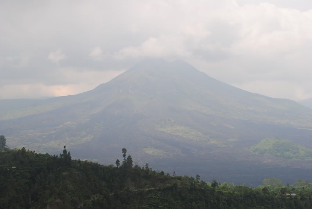 KINTAMANI(see volcano) 我们是在一间餐馆里享用自助餐边观看火山美景,餐馆边有个大露台,我们是坐在那里用餐,从这里看过对面可以看到不错的火山美景,buffet价钱+tax是Rp87,500,(Rm35.00)虽然味道普通,但不致于难吃也有些是好吃的,满多选择。我觉得难得出外旅游,是值得享用的。那种感觉是不一样的,那里气候微凉。你想象下,微风徐徐,美景在前,美色佳肴的那种感觉。