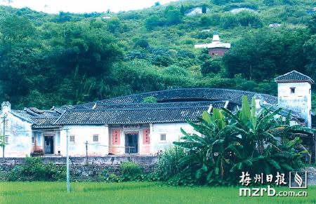 客家房屋建筑的特征,多为厅堂厨房间阁四方式。以土木结构平房为主,蹭有上下厅,左右两摆横屋左
