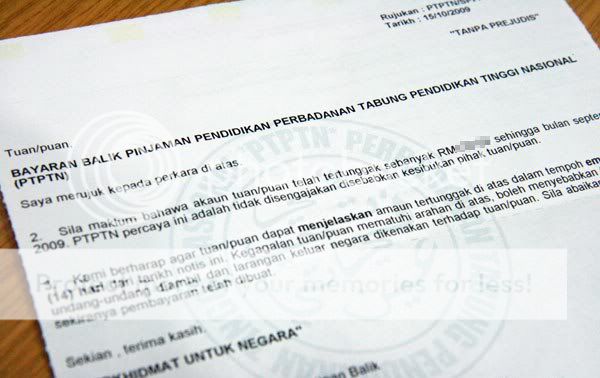 我有收到過. 一收到我就開始還了. 每個月還RM300. 還了幾年了. 覺得樓主現在開始還就會沒事了. 我朋友收到信還是不還, 最後他要出國, 去到機場被禁止出境. 因為black list了. 唯一settle的辦法就是settle full loan才能從black list remove. 如果樓主覺得未來都不會想出國或買任何產業, 不還也沒關係. 不過借了錢是應該還的. 有借有還上等人. 你也想將來你的孩子有錢借吧. |