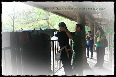 工作人员帮我戴上耳罩后,我就站在AK47后方,工作人员指示我(用比手画脚的方式)握枪的姿势,然后将我的耳朵一边紧紧贴着枪柄,另一边则用手紧紧压着(应该是避免枪声造成耳膜受损),然后我手指一扣,射出了我的子弹~