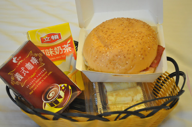 饭店准备的是西式早餐,一边吃早餐一边看日月潭街道的雨景,还蛮写意的