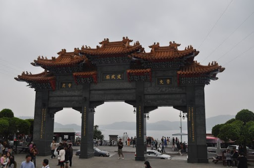 说走就走,我们就回到码头坐船到对面去了,由于下雨天,又才九点多,根本就还没人游湖,所以我们好像包了整只船酱,嘻嘻