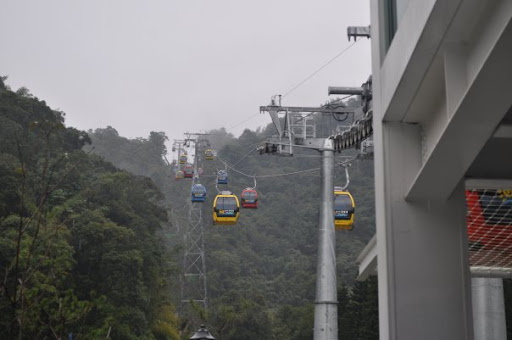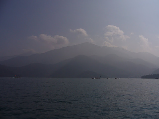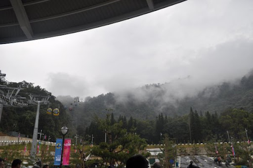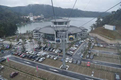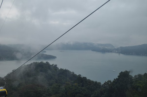 缆车都五颜六色的,很漂亮,只是雾有点厚,看不清楚日月潭潭风景,不然更美