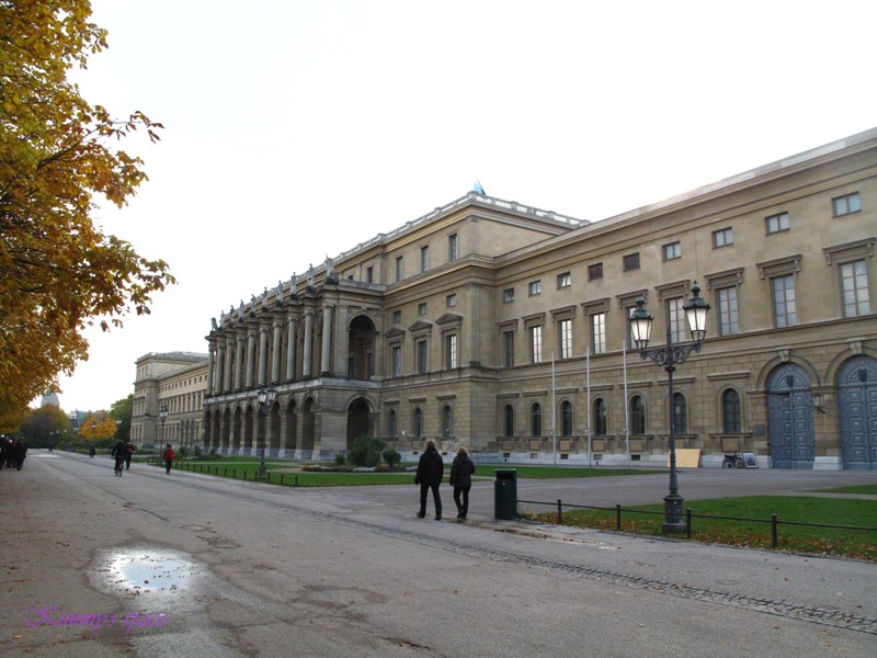 从Odeonsplatz地铁站上来,向左走,就是Residenz区,对面是个很美的大公园。