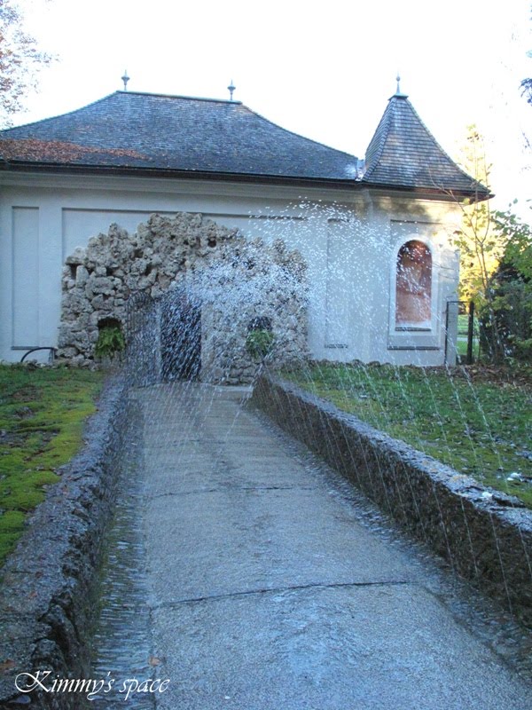 Hellbrunn Palace的Trick Fountains。