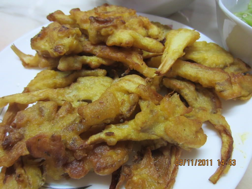 3。把鲍鱼菇粘面糊炸至金黄即可。 |