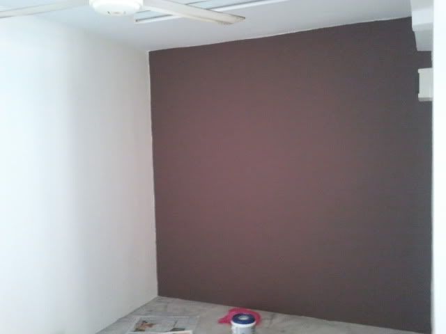 这是dining area, 深色的那面墙打算挂上一面3.5尺x3.5尺,银色框的镜子。 |