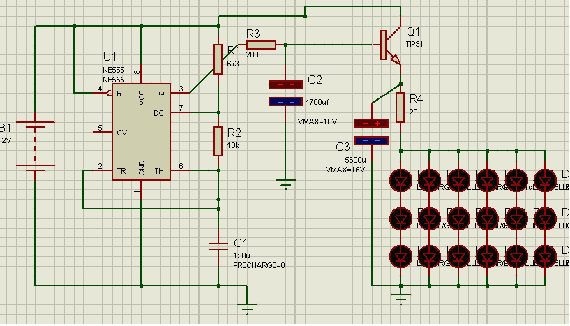 一般led都不超过5v的,版主那个电路已经差不多8v了!用一般led是会烧的!不过版主说明了!【下面的电路是模拟的, 实际操作也许会不一样】