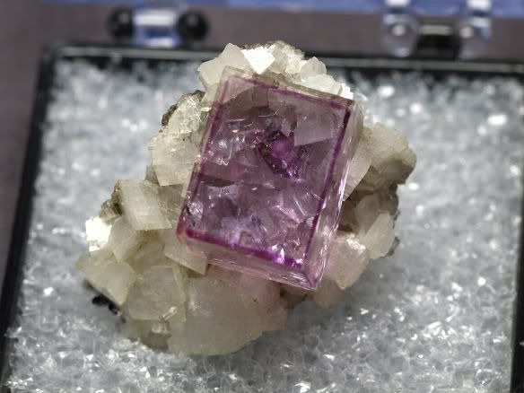 美國伊利諾州的螢石就是那種內部顏色豐富,晶體好看的典型,2010在土桑展某個店家裡面見到我所看過最棒的一批伊利諾螢石,總共兩百多顆開價八萬美金還是更多(過了兩年,數字有點忘記了),每顆至少都是一個拳頭到要兩手捧的大小,顏色漂亮晶體完美,原本想凹店家賣我一顆,只可惜他說那是幫朋友賣的,希望盡量整批脫手,當時忘記拍照,等我過兩天回去居然真的整批被包走,一顆都不留,後來去TGMS看到一個伊利諾螢石的展櫃,忍不住又要哀怨一下櫃子裡面的標本還是比不上我看到的那批... |