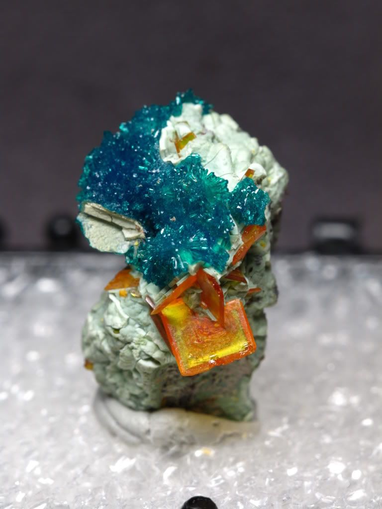 一樣舖天蓋地啊~還可以按照礦坑一櫃一櫃展,反正Arizona差不多就是藍銅孔雀鉬鉛礦連發,偶爾穿插點綠松石跟水晶這樣... XDD |