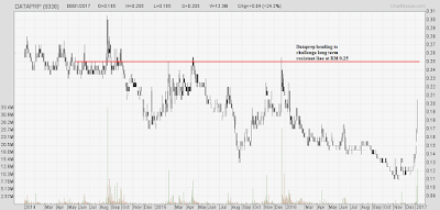 Before I would start, I would like to congratulate those who had took quick action on what is becoming to Dataprep after reading my piece of sharing and analysis in my previous 2 writings. I had featured Dataprep through "New Year, New Life, New Journey with the next Genting in making" and "Dataprep walking the talk and making the changes". It was a mere 15 cents overlook counter, which had now saw price appreciated to 20 cents in 2 days. As I had mentioned, anything below 20 cents is truly worthwhile and a blind buy decision. Now Dataprep is sitting at 20 cents, but will it stop here? I will show you 2 examples of my forecast later on why Dataprep will not stop here.