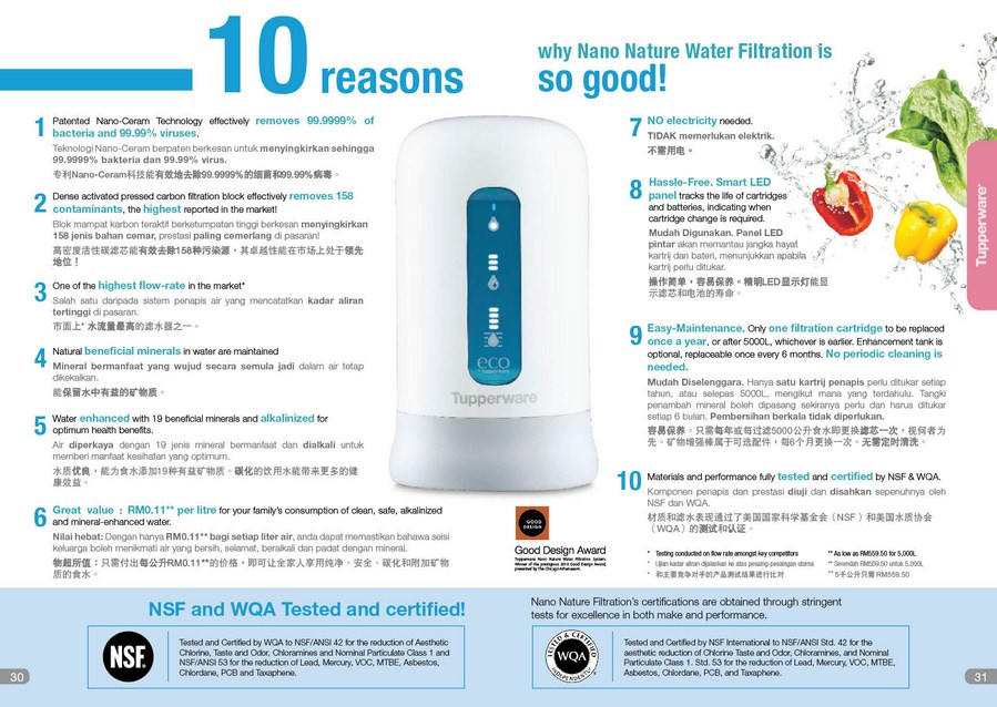 我个人觉得这个不错HomePure Water Purifer 7-Stage Water Filtrution,价钱是RM2400左右。这水机计算耗用4000公升,水机處理的水是Pi-Water.有意请pm |