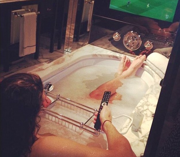 日前,西汉姆前锋卡罗尔用在浴缸看球的惬意方式来庆祝球队战胜桑德兰。