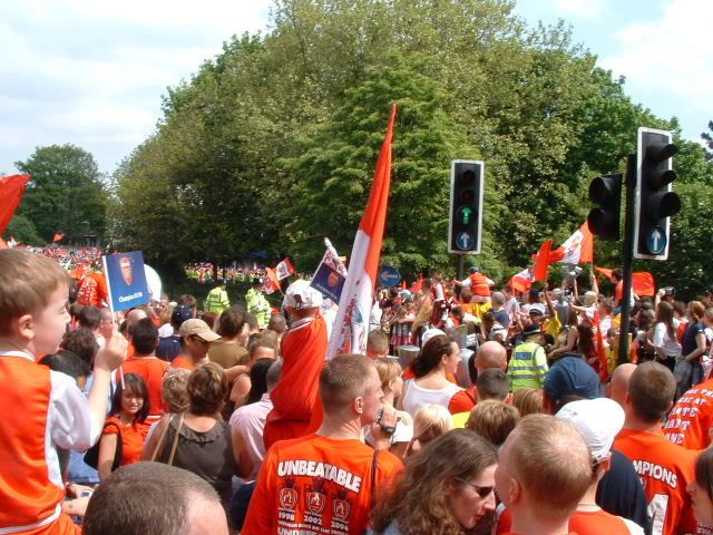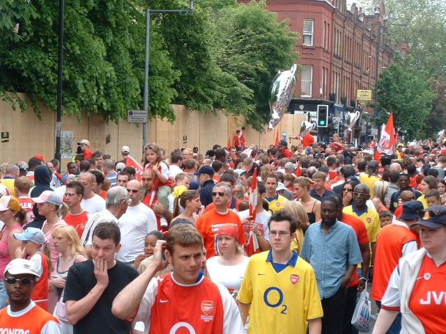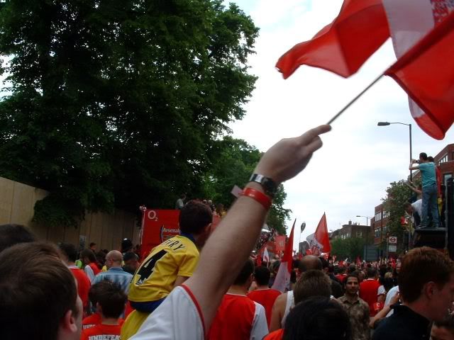 | 这些私人珍藏以前都贴过了,为了配合主题又搬出来。这是从海布里球场游行到Islington市议会半途拍的。我还收着O2派的纪念品!