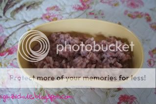 我的做法是:在碗里放入黑米糊片+ 热水,稍凉后再加入奶粉。