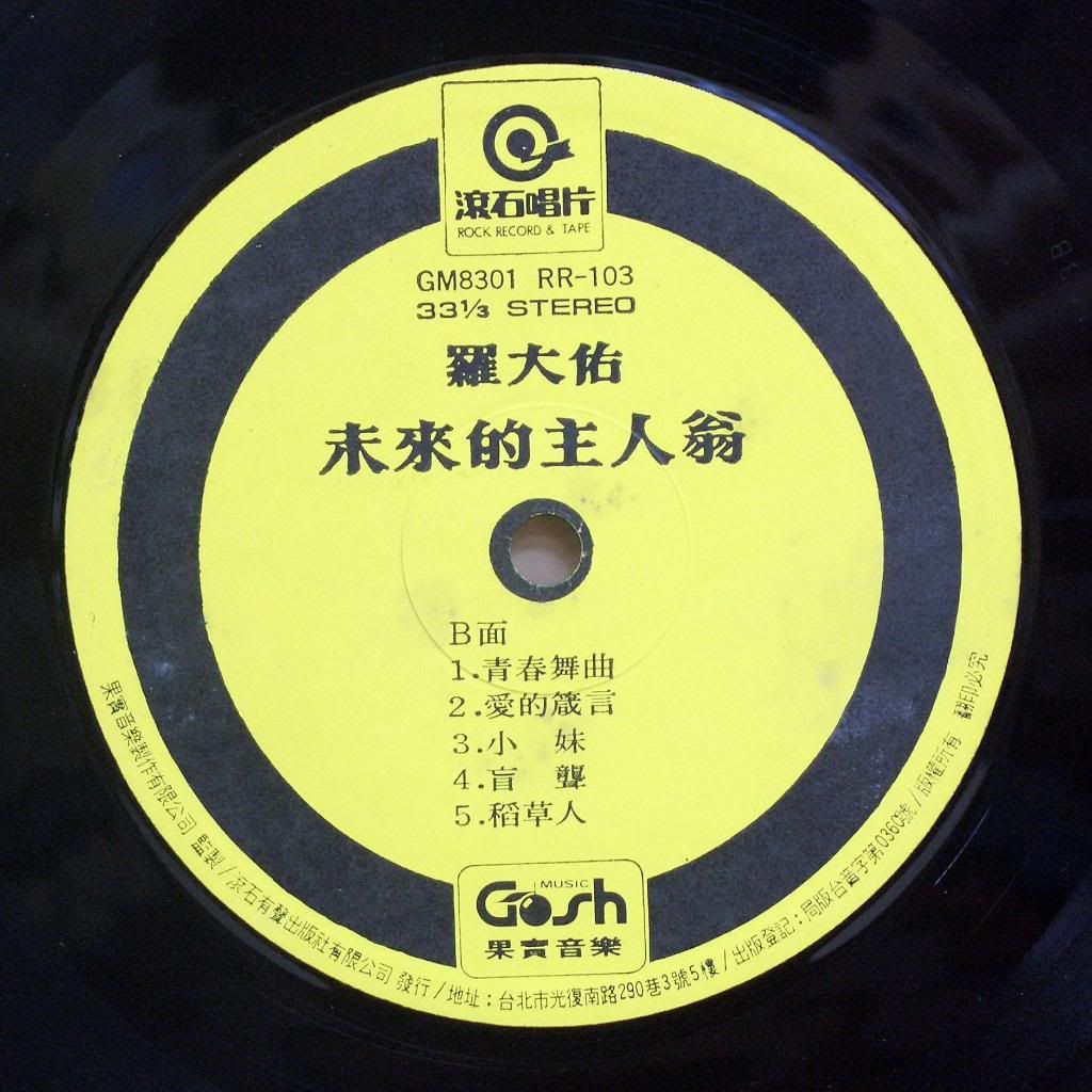 其實經上次白老大提醒之後我就馬上四圍出去揾羅大佑台灣版之乎者也,未來主人翁,家和青春舞曲四張黑社會,皇天不負有「膠」心人終於啤我殺哂番嚟之不過用咗一個極高的價錢,依家D台灣版早期黑膠真係貴到飛起,我依家台灣版港版都各有一張心滿意足了,至於個D白版就隨緣吧!多謝白老大你令我依家知道世上都係你最好!!多3天我就可以看到你了!!!哈哈哈!!! |
