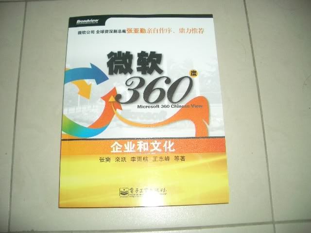 今天没有买到70%的任何优惠书,因为不是已经买了就是不是非常需要看的书,所以按捺着自己的购买欲,不因为便宜而扫书。但是临走前还是来个临门一脚,无意中看到这本新书,是Microsoft 华裔员工合作撰写的一本微软工作记。从华裔员工角度看微软?我觉得这是一本非常值得一看的好书。里面还有提到他们的应征过程和考试的题目。都是IQ题,真的很有趣!